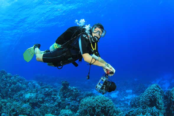 Afterwards, we'll get kitted out with our scuba diving equipment and dive into the waters around Almuñécar so we can put everything we've learned into practice. During our beginners scuba diving lesson, you'll admire the seabed of Granada's coast, which is one of the most vibrant in the Mediterranean.