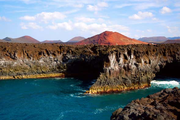 The tour makes another stop in El Golfo, and in this part of the island, we can see an astonishing wonder of nature, the Charco de los Clicos, or "The Green Lagoon," colored green by algae.