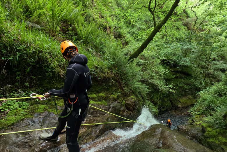 Adrenaline, nature and adventure await you in this canyoning experience in Arriondas. We'll descend through spectacular canyons surrounded by green Asturian landscapes.