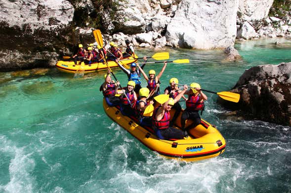 Ready, set, go...! You'll row along the River Soča for 5 miles (8 kilometres) and we'll even make a stop along the way for you to enjoy one of the region's most idyllic natural pools; you'll even be able to jump overboard and take a dip here!