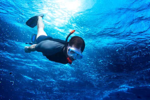 We'll meet at 3 pm at Passeig des Riu to go to the beach of Cala Galdana, where we'll pass out the material and hop on a boat that will take us to the best spots in Menorca to practice snorkeling.