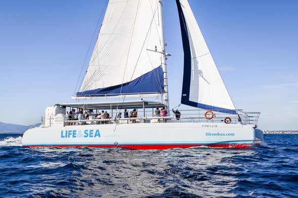 At 10 am, we'll meet at the El Arenal sailing club and hop aboard a brand new catamaran. Let's set sail!