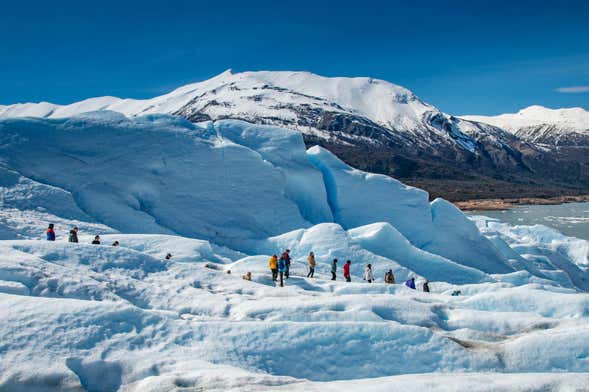 We'll meet up at the indicated time in the Bajo Las Sombras port, where we'll board a ferry to take us across Lake Rico. Once we reach the other side, we'll begin our trek to the Perito Moreno Glacier. We'll arrive at the opposite coast after around 20 minutes of navigation in front of the south face of the Perito Moreno Glacier.