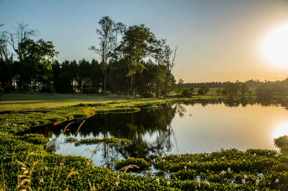 After exploring the grounds for around one hour, we'll take a rest and recharge with a delicious aperitif consisting of homemade pizza, cheese, and a glass of wine. Then, when the meat has finished cooking over the firewood, we will enjoy the main course of the traditional lunch. The beef comes served with delicious Uruguayan sauces, as well as salad, dessert, and a coffee or tea.