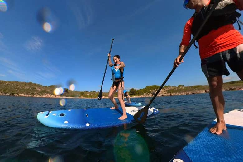 In this centric shop in Fornells, we'll begin a 20-minute training where you'll learn how to use the paddle board and paddle. Once we're ready, we'll head to the sea to begin paddling along the coast of the North Minorcan Marine Reserve, one of the Balearic Island's most beautiful sites.