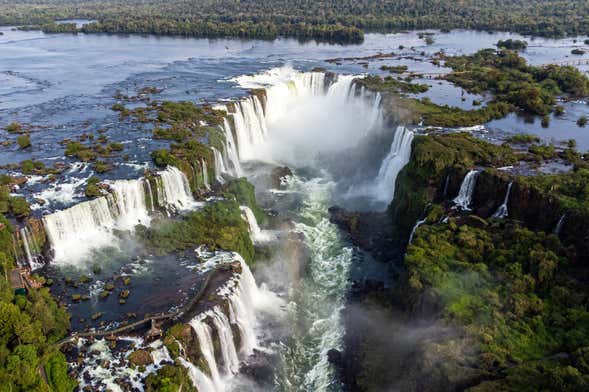 Throughout this 10-minute ride, you'll enjoy unparalleled views of the Iguaçu National Park and its iconic waterfalls from the sky. You'll also have the opportunity to see the Garganta del Diablo (Devil's Throat) from a very privileged perspective. If seeing this 80-metre waterfall is impressive on land, imagine what it'll be like from the air. It'll take your breath away!