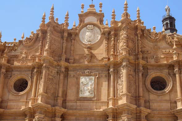 Admire the walls of a building that holds two centuries of art inside and discover hundreds of stories with this entrance to the Cathedral of Guadix.