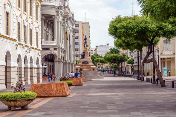 We'll continue the tour along Avenida 9 de Octubre until we reach the Malecón de Guayaquil, a recreational and transit area next to the Guayas River.