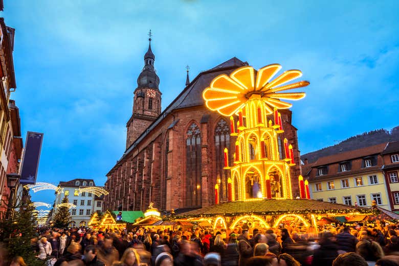While walking through the market, we'll be serenaded by Christmas carols performed by local choirs. We'll also see the majestic Heidelberg Castle in the background, its enchanting lights adding a magical touch to our surroundings.