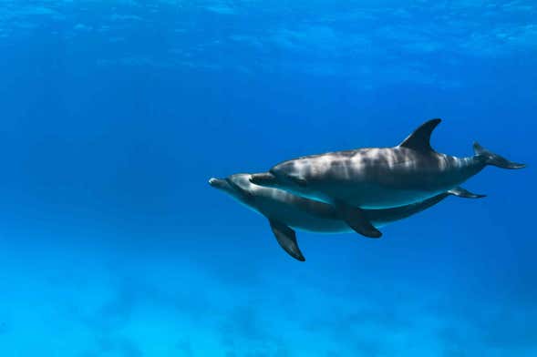 When we find the best sighting area, we'll anchor the boat, grab the snorkeling equipment and jump into the water to swim with them. We're sure they'll be curious and will be just a few meters away from you – it'll be a unique experience!