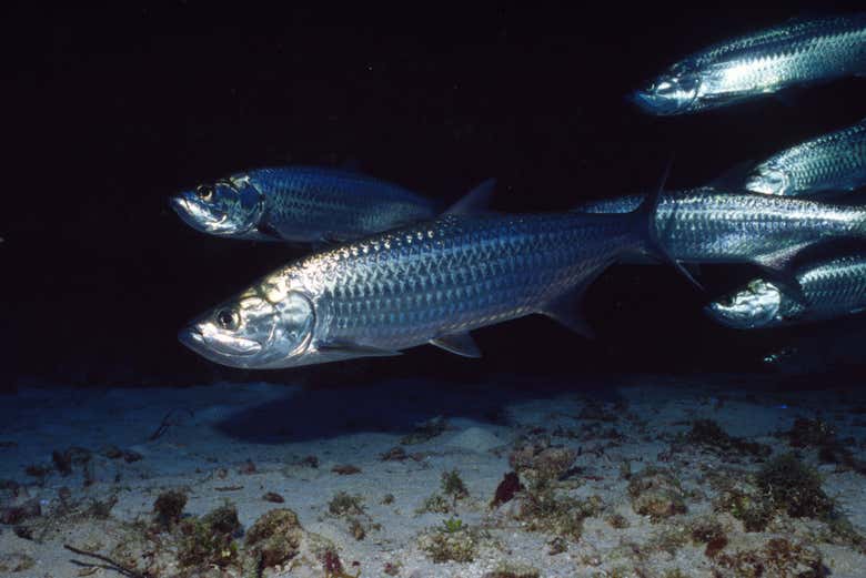 These shiny silver fish will glide elegantly around us. These specimens, which can exceed 1.5 m (5 ft) in length, will use the light from our flashlights to stalk their prey, offering us a hunting spectacle that is as exciting as it is harmless to humans.