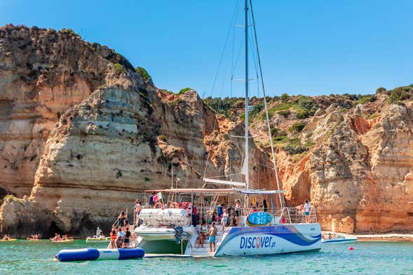 We'll meet at the port of Lagos and set sail on board a catamaran. We'll head to Praia da Luz and cruise along the Algarve coast. While you sit back and relax in the sun, you'll enjoy the beautiful views the coast has to offer, with its glorious beaches and fascinating caves in the cliffs.