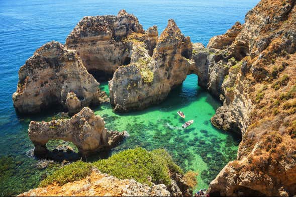 We will also pass the idyllic surrounding beaches, including Praia D. Ana and Praia do Camilo, two of the region's best. Along the journey, we will drop anchor so that you can take a refreshing dip in the emerald waters of a protected bay.
