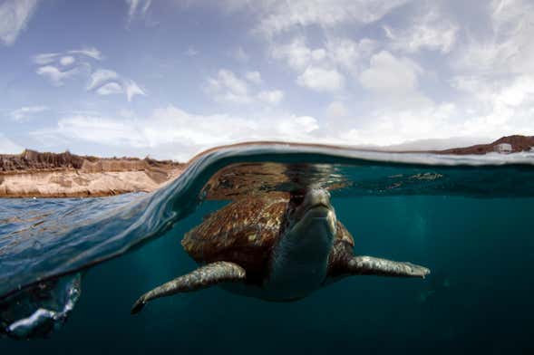 At 9 am, we'll meet at the Port of Las Galletas and board a Zodiac-type boat. The boat will take us to an area where we can snorkel and observe sea turtles.
