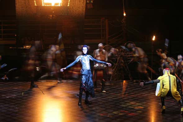 Another example of the magnificence of this show: the boat in the storm scene weighs 1102lbs (500 kg) and is completely handled on stage by the performers.