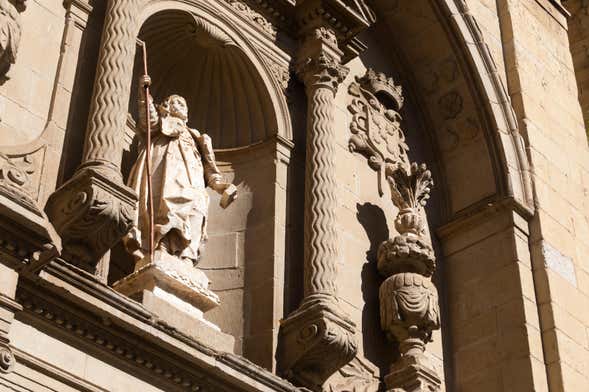 We'll stroll through the historic centre of the city, admiring the exteriors of emblematic monuments such as the Museum of La Rioja, where Espartero once lived, and the Co-Cathedral of Santa María de la Redonda, located in the beautiful Plaza del Mercado. We'll take a look at the architectural details of this 16th-century church and then take a pleasant stroll along the banks of the Ebro River.