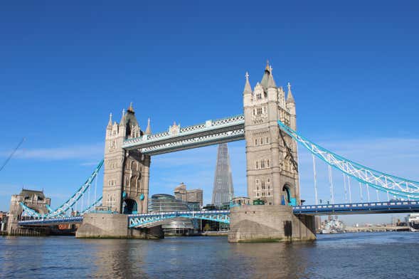 With your ticket, you'll be able to climb up to the top of the bridge and walk along its famous walkways, where you'll enjoy the impressive views 138 feet (42 meters) above the River Thames. On one side, you'll see the London Tower, the St Paul's Cathedral, and the imposing Shard skyscraper while on the other side, you'll be amazed by the modern silhouette of Canary Wharf and Shooter's Hill. Are you brave enough to cross its iconic glass floor? This experience isn't for the faint-hearted! In addition, during the visit, you will be able to enjoy recorded commentaries in English that will tell you all the details.