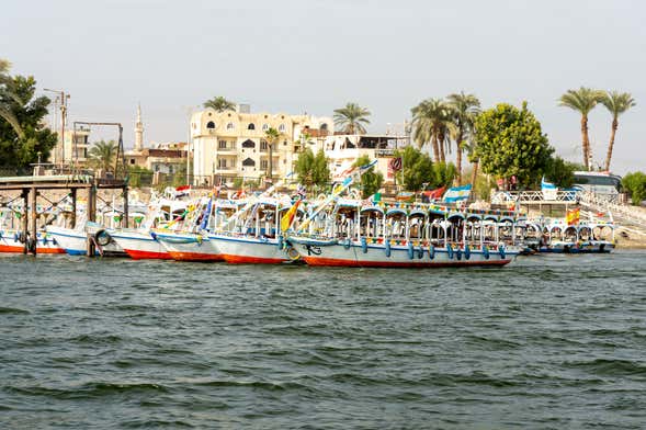 At the agreed time, we'll pick you up at your hotel or cruise ship in Luxor and drive to the port of Luxor. There, we'll board a felucca, a traditional Egyptian boat, and set sail for Banana Island.