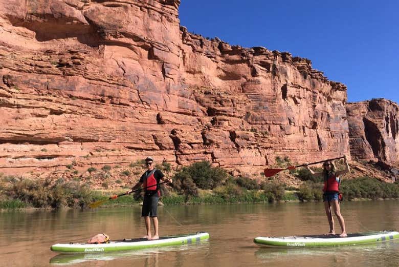 During the booking process, you'll be able to choose between the 2 options listed below. All include paddle surf equipment rental and an English–speaking guide who will accompany you on this adventure. In addition, each option starts at the offices located at 44 W 200 N in Moab.