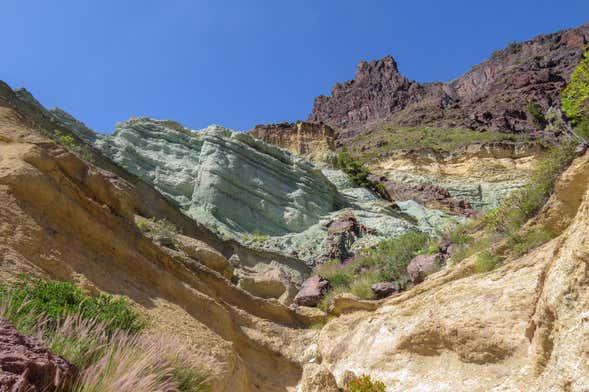 As we walk through this semi-desert landscape, we'll admire the vivid greens and reds of the Azulejos de Veneguera. As we marvel at these characteristic splashes of color, our guide will tell us all about how this natural monument was formed after the eruptions of the Tejeda volcano.