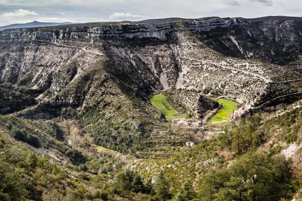 Our first stop will be at the foot of Mont Saint Baudille, where we'll begin to appreciate the natural beauty of the South of France. After enjoying these landscapes, the route will continue towards the Cirque de Navacelles gorge, the jewel of the region. We'll go to the Baume d'Auriol or Blandas viewpoint, depending on the number of people, to admire the narrow gorge from close up.