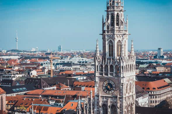 The tour around Germany's third largest city will include a step into the past, admiring the famous Rathaus-Glockenspiel in Marienplatz in the heart of Munich. It chimes 2-3 times a day while reenacting stories from the 16th century. We'll get a taste for Bavarian traditions by stopping at the long-standing Munich market, Viktualienmarkt, dating back to 1807 when it was moved after becoming too big for the central Marienplatz.
