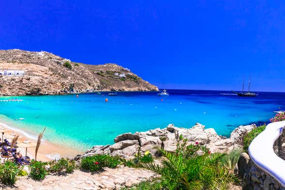 After meeting at the Ornos Beach Bus Stop, you'll climb aboard a traditional Greek boat known as a caïque or kaiki, ready to set sail to the spectacular beaches along the southern coast of Mykonos.