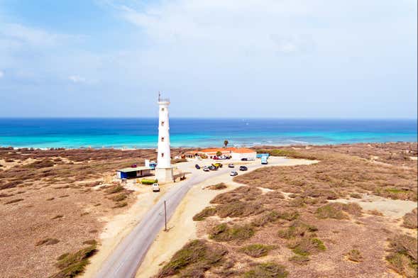 Then we'll hop into our vehicles and set off on a tour of the island of Aruba. As we drive we'll admire spectacular views from clifftops, natural pools in idyllic caves, ruins of the Bushiribana gold mine, the Puente Natural, the Alto Vista Chapel, the California Lighthouse and much more!