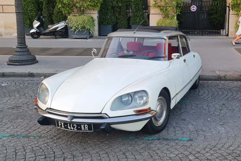 At the scheduled time, we'll collect you from your hotel in Paris in a Citroën DS. This classic car, which came to market in 1955, started a revolution in its time due to its convertible roof.
