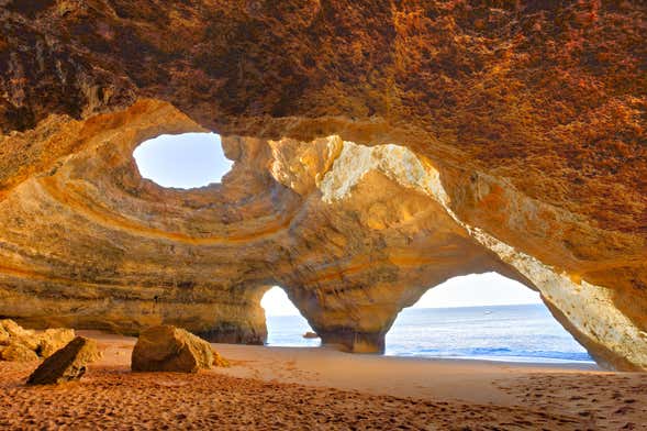 We'll also see the iconic Farol de Alfanzina lighthouse, which was built in 1920. Then we'll head towards Benagil Beach, considered one of the most beautiful beaches on the Algarve coast.