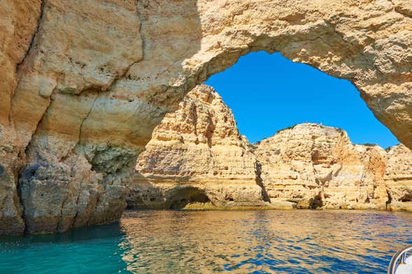 At the time you choose, we'll meet at the Portimão Marina and board a boat to set off on our cruise to the Benagil Caves. We'll spend two hours sailing the coast and admiring the natural cavities that have been created in this rocky area of the Algarve.