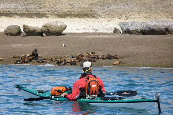 When we are ready, we will walk to the beach and start paddling in the waters of Golfo Nuevo. We will enjoy the incredible views of the coast while we approach a colony of sea lions. When you least expect it these friends will appear in the middle of the sea, it will be amazing!