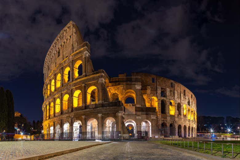 During the tour, we'll explore the most iconic sites in the Eternal City while they're all lit up at night. From the meeting point, we'll make our way on the bus towards the Coliseum, where we'll marvel at the majestic Roman amphitheater all lit up. We'll be transported back in time to ancient Rome!