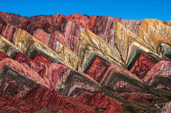 We'll pick you up between 6:30 am and 7:10 am from your hotel or the meeting point and set off for the beautiful town of Purmamarca, meaning "city of the desert" in the Aymara language. Our first stop will be at the Cerro de los Siete Colores hill, whose dazzling colours will take your breath away! We'll then enter the sister province of Jujuy, where we'll have the opportunity to visit the great Quebrada de Humahuaca.