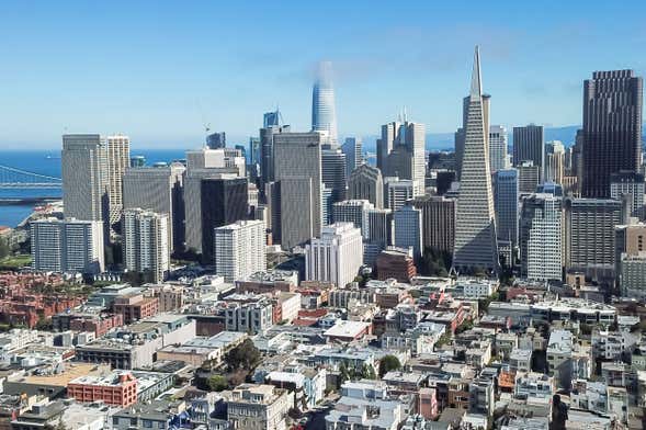 As we finish up the tour we'll leave Chinatown behind and head into the Financial District. We'll discover the contrast of buildings like the marble-clad former Pacific Stock Exchange with contemporary skyscrapers such as the Transamerica Pyramid, a futuristic building that's one of the most characteristic structures in San Francisco.