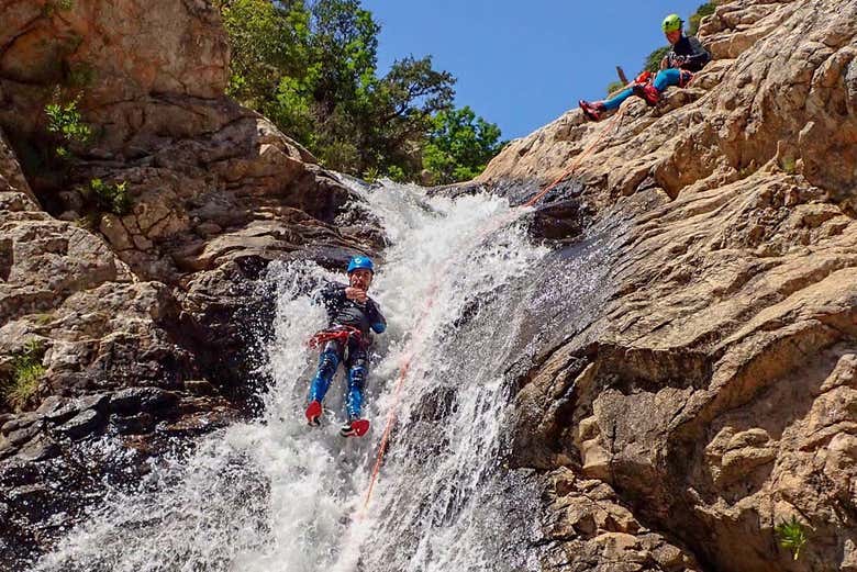 Once we're ready, we'll cross part of the Pitrisconi River, diving, jumping, swimming and abseiling. Meanwhile, we'll admire its impressive granite gorges carved by the water and its natural pools. We'll also pass by its waterfalls, where the water flows all year round!