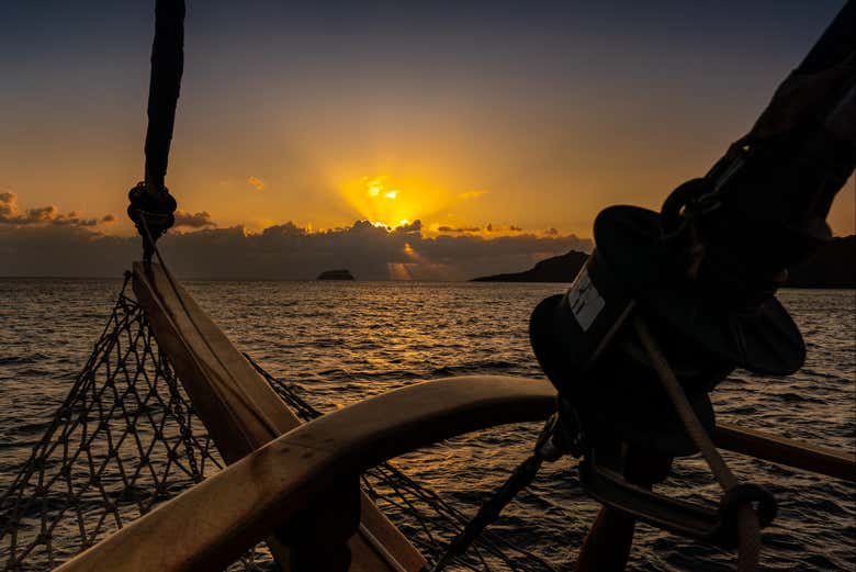 After swimming in these warm waters, we'll return to the boat to begin sailing around the Santorini Caldera. On the way back, you'll be able to take magnificent photographs of the landscape and the houses that literally hang from the edge of the cliff, all combined with the beautiful colours of the sunset. Without a doubt, a magical experience in the Aegean Sea.