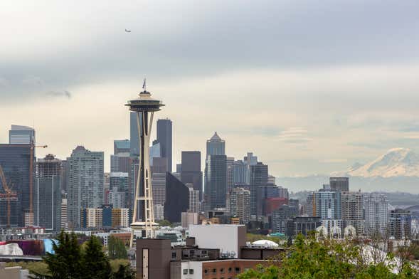 Continuing on, we'll make our way to Kerry Park lookout point, where we'll take in the beautiful Seattle skyline. Here you'll have one of the best views of the Space Needle Tower and Mt. Rainier.