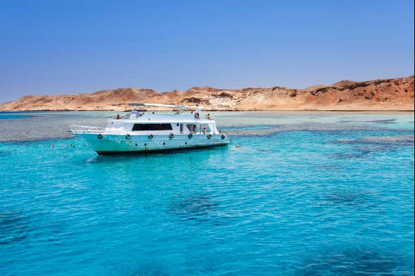 Then we'll climb on board a boat, and make our way in the direction of Tiran island, where we'll arrive after approximately an hour. Its turquoise and crystal clear waters make this one of the best places in the world to try diving.