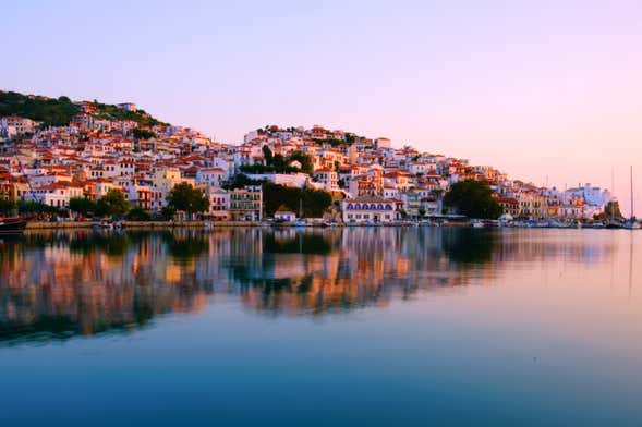 First, we'll stroll through the historic center of Skopelos and head to the Church of Panagitsa of Pyrgos, a temple dedicated to the Virgin Mary that's located in a fortress. While we soak up the charm of this whitewashed church with a small slate dome, we'll enjoy unbeatable panoramic views of the Aegean Sea.