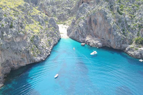 Next, we'll sail to Sa Calobra and Tuent Cove, admiring the beautiful coastal landscape as we pass by, and we'll then stop at the Torrent de Pareis to have another refreshing dip.