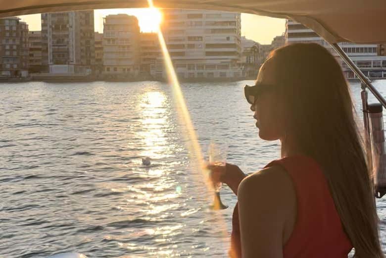 During the crossing, while listening to music onboard the boat, we'll enjoy a stunning sunset in the Vega Baja del Segura, located in the southernmost part of the province of Alicante. Be sure to have your camera at the ready!
