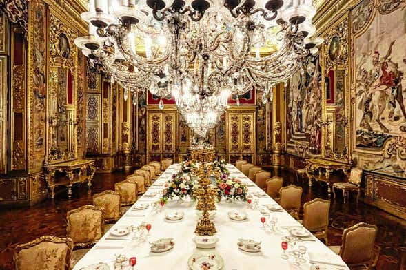 One of the gems inside this palace is the remarkable armoury, the second most important in all of Europe. The guide will show us the most intriguing items in the hall and recount the history surrounding these important objects. We'll walk through different points around the Baroque-style palace such as the main hall, covered in gold and precious gemstones, as well as the chandelier lounge.