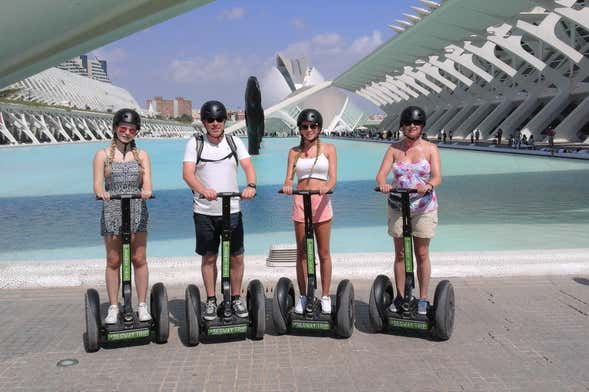 The tour will begin at Calle Náquera, 6. From there we'll go into the Turia gardens towards the buildings designed by Santiago Calatrava. During our segway tour of Valencia's City of Arts and Sciences, we'll explore the architectural complex formed by the Ópera (Palau de les Arts Reina Sofia), the Hemisfèric IMAX Cinema, the Príncipe Felipe Science Museum and the Àgora. After riding around the Oceanogràfic and the L'Umbracle gardens we'll go up to the former Turia riverbed to return to the Serranos Torres.