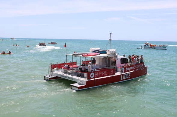 Meet us at Vilamoura Pier, and we'll set sail in our catamaran along the coast of the Algarve. Ready to cast off and venture through the southern Portuguese coastline?